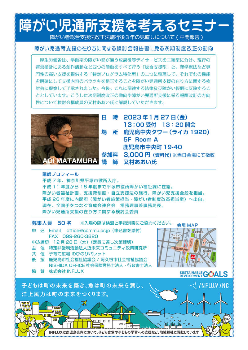 2023年1月27日(金)に「障がい児通所支援を考えるセミナー」を開催します。